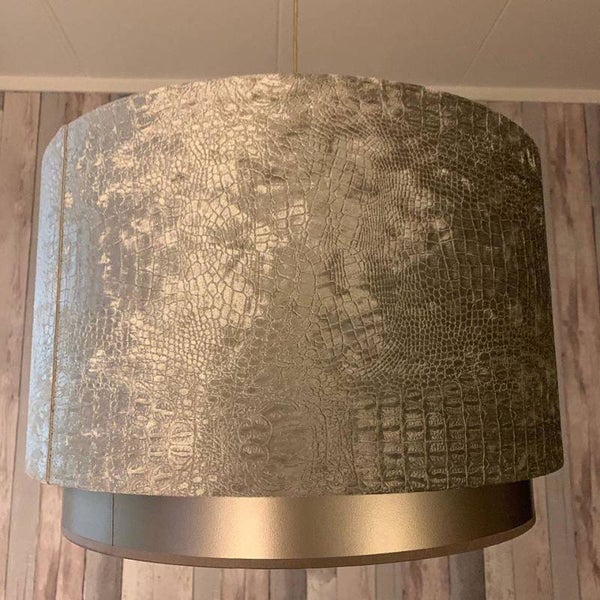De dubbele lampenkap is in verschillende diverse maten leverbaar