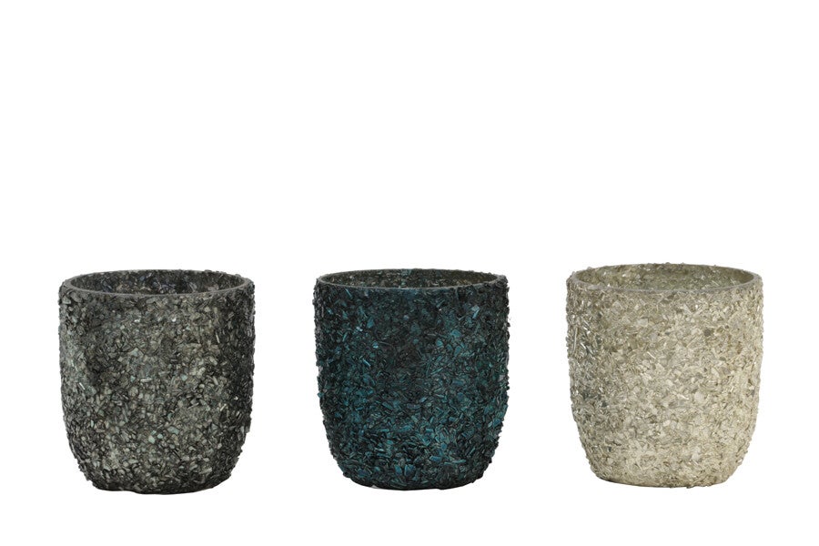 Theelicht S/3 Ø6,5x7 cm BRANCA turquoise-blauw-zilver