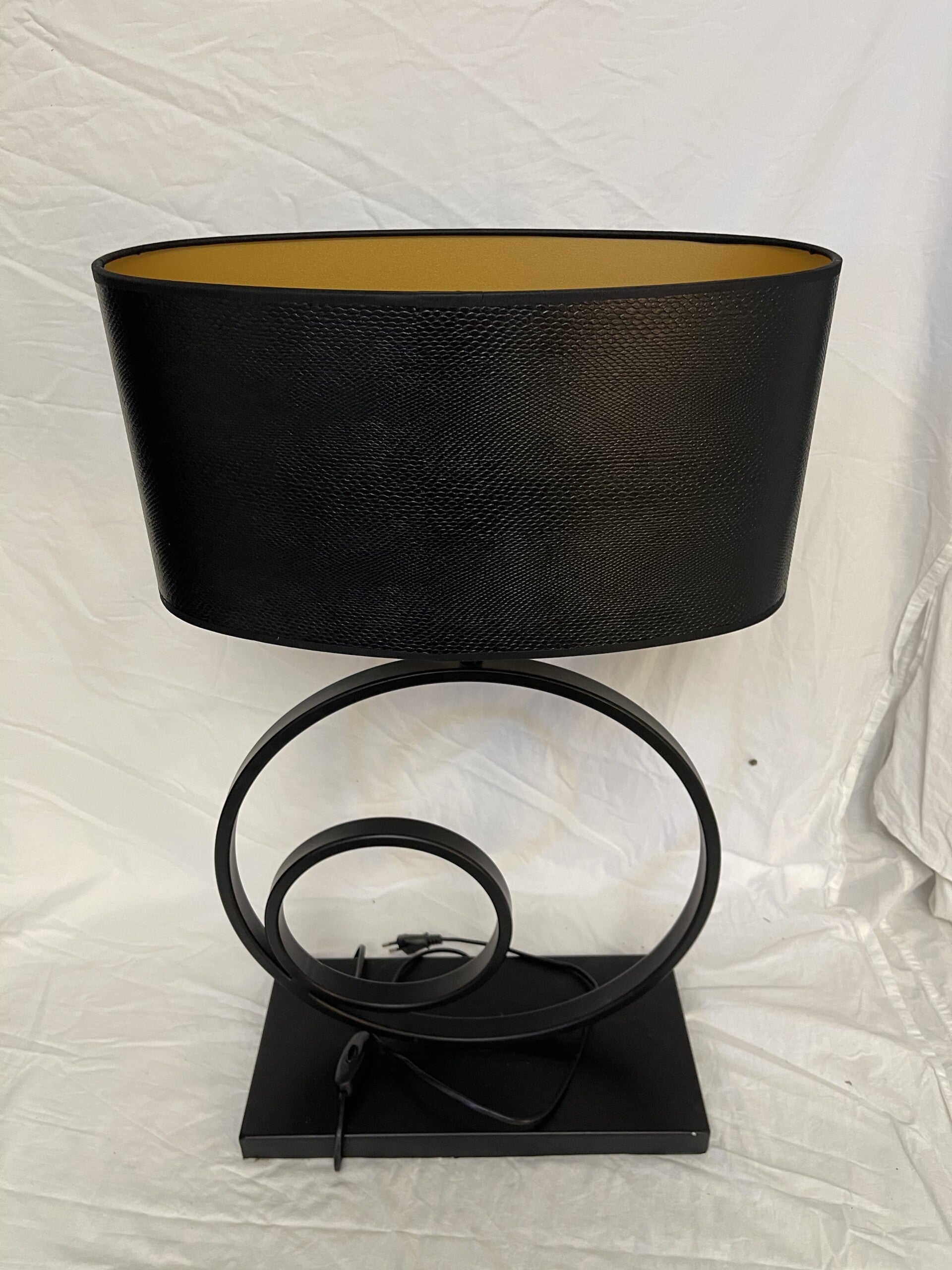 lampvoet jamiri double ring + lampenkap elips 40/22 zwart leer/op goud